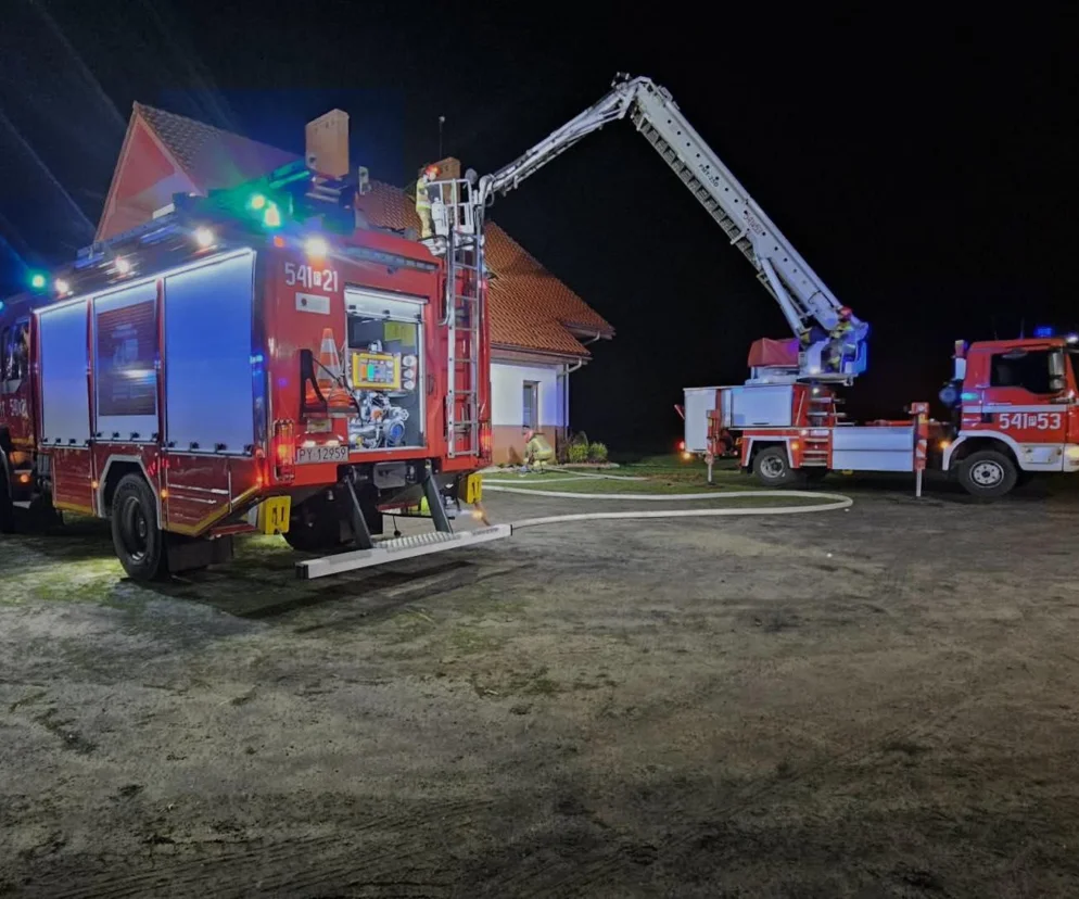 Kilka godzin później, o 00:43, wpłynęło kolejne zgłoszenie - tym razem z miejscowości Palaty. Początkowo chodziło o pożar sadzy w kominie, ale po dojeździe na miejsce okazało się, że sytuacja jest znacznie poważniejsza. Ogień zdążył przenieść się na konstrukcję dachu.
